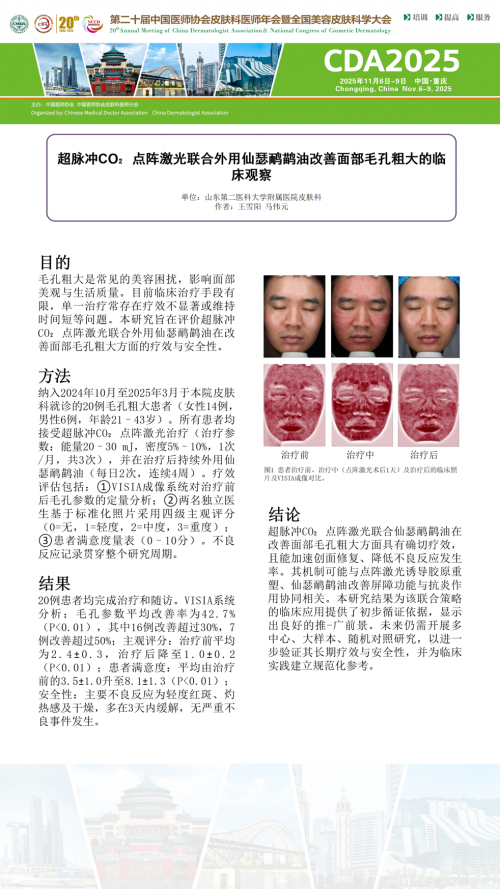学术壁报二:超脉冲CO₂点阵激光联合外用仙瑟鸸鹋油改善面部毛孔粗大的临床观察