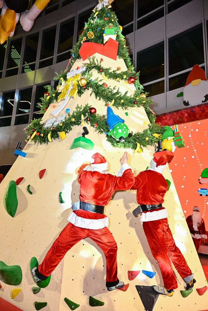 作为圣诞的灵魂元素,遍布场域的圣诞小精灵形态各异,传递节日温暖,营造活泼灵动的沉浸式圣诞氛围。进入嘉里·合集就仿佛误闯进小精灵的梦幻王国。攀爬在圣诞树上的精灵们更化身“向导”,成为玩家攀岩路线上的萌趣坐标以及绝佳“搭子”。