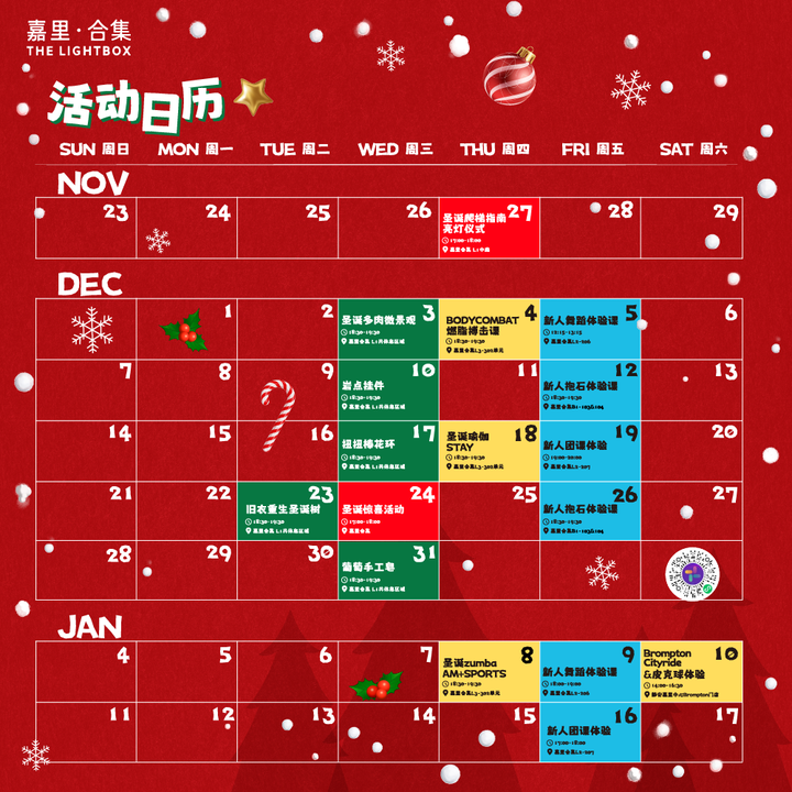 「圣诞爬梯指南」活动日历,运动+手作每周不间断