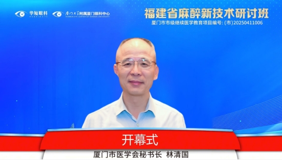 厦门市医学会秘书长林清国对华厦眼科医院集团及厦门眼科中心的精心组织表示感谢。他充分肯定厦门眼科中心在医、教、研协同发展方面取得的成就,指出医院麻醉学科连续多年承办高水平研讨班,学科影响力不断提升。