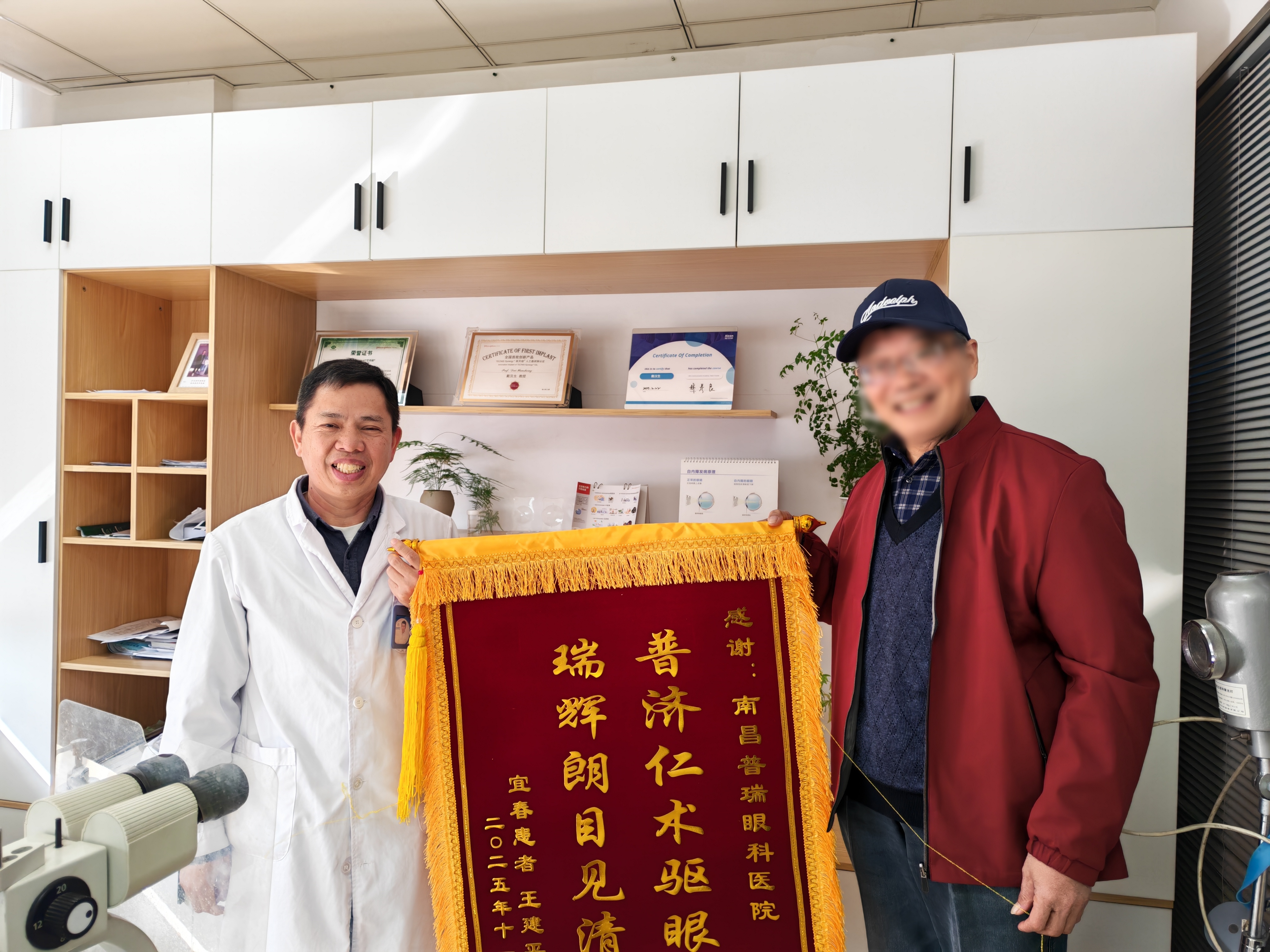 这个消息如同一把金钥匙,重新开启了王爷爷尘封已久的希望之门。加之彼时他的右眼因两载白内障叠加高度近视,视线如蒙尘铜镜,状况日渐堪忧,他毅然在聚会结束后,带着忐忑与孤注一掷的决心,直奔南昌普瑞眼科医院。