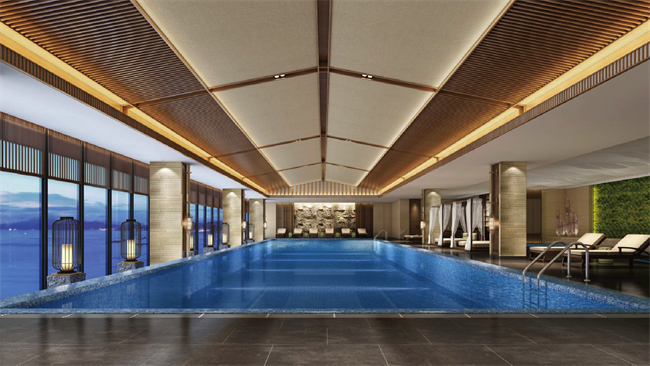 贵阳宜邸温泉度假酒店建筑面积2.73万平方米,包含接待大厅、158套客房、驿站茶园、咖啡厅、桃源小馆、康体中心等功能区域。温泉泉眼深2000多米,出水温度 53℃,PH 值7.67呈弱碱性,富含偏硅酸、锶等多种微量元素,属硫酸钙医疗型温泉,兼具养生与休闲价值。涵盖湖景泳池套房、亲子宝贝套房等多种房型,部分客房也配备室内纯天然温泉泡池。满足不同客群需求。同时配备了国际会议中心,会议设施完善,设有 1000 平方米多功能厅、1200 平方米宴会厅及 10 余个不同规格会议室,台型灵活多样,可满足大型会议、商务洽谈、婚宴庆典等多元场景。餐饮方面,引入包含本地特色在内的融合式中餐及西式餐饮,配备多个包厢与散客餐区,可同时接待千余人就餐。康体休闲设施丰富,包含健身房、瑜伽房、温泉无边泳池、SPA、棋牌室、亲子童玩中心等,可同时容纳上百人休闲娱乐。