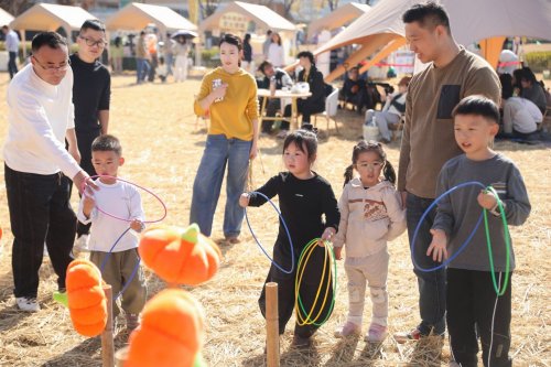 稻田研学:活动当日,巨型稻草人艺术装置成为游客纷纷打卡的亮点,游客亲身体验扎一束稻草捧花,体验收割的喜悦。云禾农场乐园里洋溢着欢声笑语,南瓜套圈区排起了长队,每一次精准投掷都引来阵阵喝彩;农场保龄球区传来阵阵碰撞声和欢笑声;孩子们最爱的“田园保卫战”更是热闹非凡,他们在田埂间奔跑追逐,纯真的笑声在田野上空回荡。