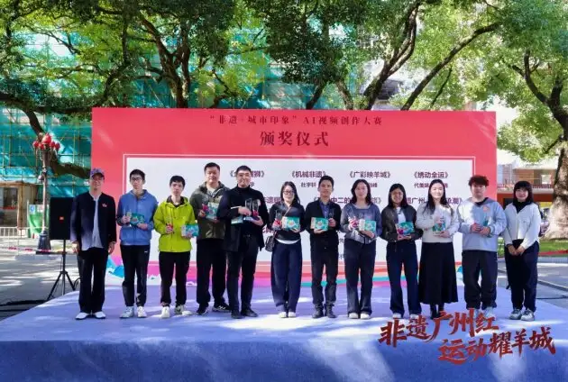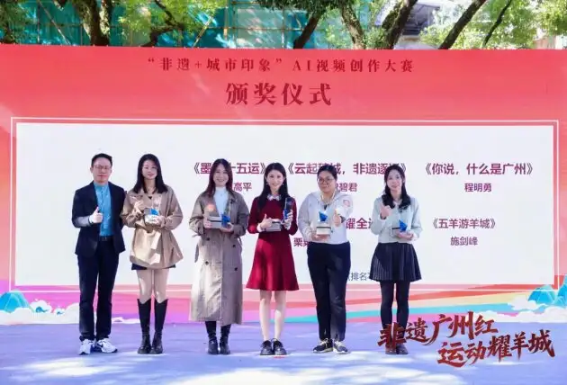 “非遗+城市印象”AI视频创作大赛成果同步揭晓,大赛自启动以来,得到了社会各界的广泛关注与积极参与,共征集了340份参赛作品。经过专业评审团的严格遴选与网络人气投票,最终《非遗广州红 运动耀羊城》《锦绣状元》《五羊的约定》3部作品获评一等奖,《你说,什么是广州》《五羊游羊城》《云起穗城,非遗逐运》《墨韵十五运》等5部作品获评二等奖,《童心看全运·非遗耀广州》《非遗广州,穗脉承潮》《苏珊中二的广州之旅》等10部作品获评三等奖,另评选出红棉创意奖5名、智绘未来奖5名、羊城华彩奖5名。
