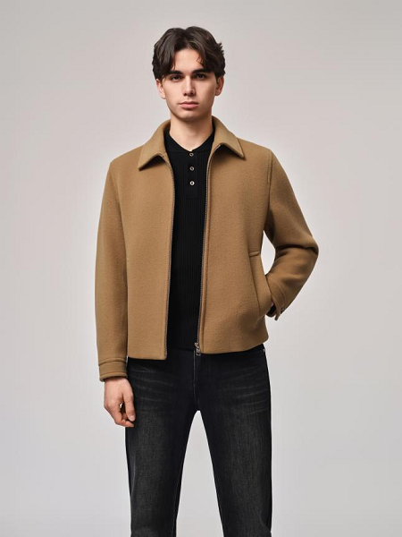 欧度本季时尚风格线对色彩的运用堪称大胆而精准。高饱和的亮靛色羊毛衫作为造型核心,在深色基调的秋冬氛围中脱颖而出,兼具活力与高级感。与此同时,摩卡色拉链短大衣则以低明度、高质感的色调,营造出温暖醇厚的雅致气质,与同色系Polo领羊毛衫形成层次渐进的整体感。