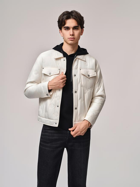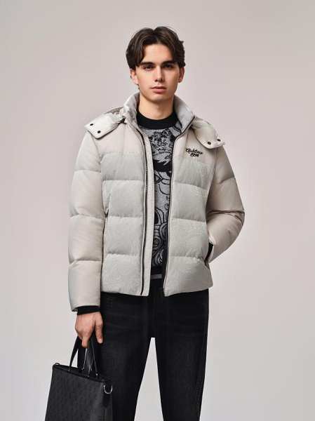 值得一提的是,色彩在此并非孤立存在,而是与廓形、材质紧密联动。例如纯白色羽绒服通过激光雕刻欧度变型logo暗纹凸显品牌身份,在与黑色连帽卫衣的对比中强化视觉冲击,既清新又充满街头力量。这种“色彩功能化”的思维,正是当代男性着装从保守走向自信的关键一步。
