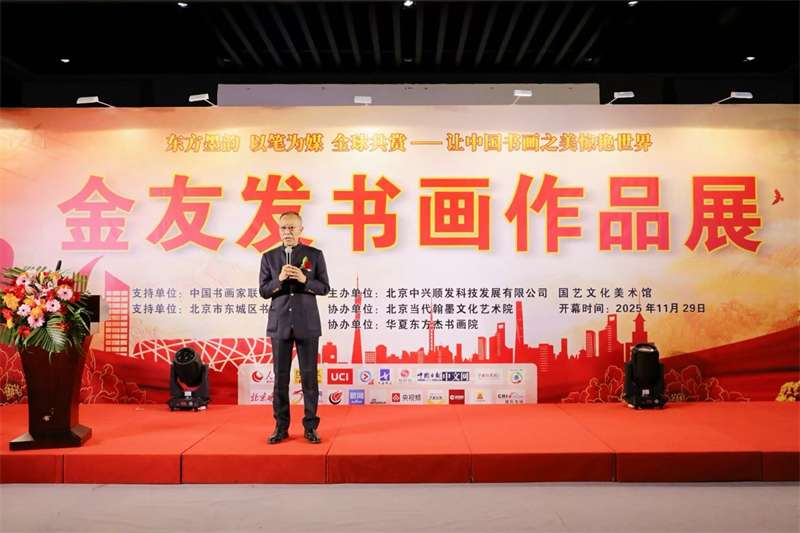 2025年11月29日上午,由北京中兴顺发科技发展有限公司、国艺文化美术馆主办、华夏东方杰书画院、北京当代翰墨文化艺术院协办,中国书画家联谊会、北京市东城区书法家协会支持的——金友发书画作品展在北京民族文化宫盛大启幕。