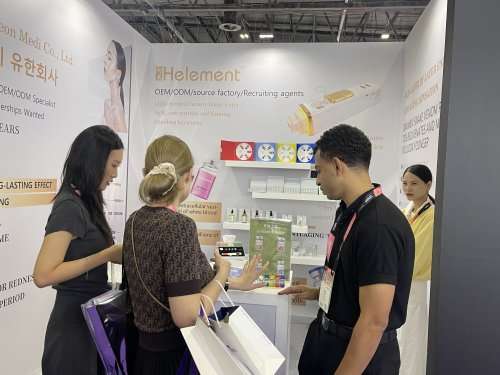 其中,小粉瓶水光和天使之泪益生菌水光精华在展会现场最受瞩目。其天使之泪“益生菌球”的创新,精准契合了客户对演示性、功效性和特色性的迫切需求,成为海外买家重点关注的产品。