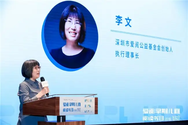 深圳市爱阅公益基金会创始人李文女士回顾了书目八年来的启程初心。她强调,该书目凝聚了众多专家、学者和出版界同仁的智慧,其生命力源于持续的专业投入。她倡议,亲子阅读应成为以书为媒的温暖陪伴,是构建高质量亲子关系的重要途径。
