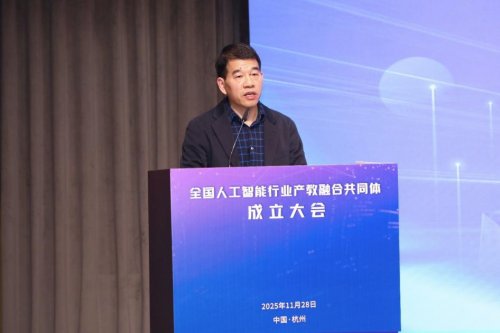 陈达在致辞中指出,全国人工智能行业产教融合共同体的成立,深入贯彻《教育强国建设规划纲要》及《浙江省人民政府办公厅关于进一步深化产教融合的实施意见》的具体行动。他强调,产教融合是职业教育发展的必由之路,也是推动人工智能产业创新发展的关键所在。共同体应充分发挥各成员单位的资源优势,聚焦人工智能前沿技术与关键难题,联合组建科研攻关团队,开展产学研用协同创新,为产业技术升级和产品迭代提供有力支撑。