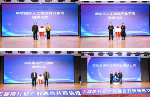 在大会中,举行了多项重要平台与基地的揭牌仪式,包括“中软国际人工智能科创基地”“新华三人工智能产业学院”及“中科曙光产业学院”等。这些实体平台的建立,标志着产教融合向更深层次迈进,为人工智能人才培养提供了坚实的实践支撑。同时,“数智云国际资源平台”的正式上线,更是为产教融合插上了数字化的翅膀,促进了教育资源的国际共享与交流。