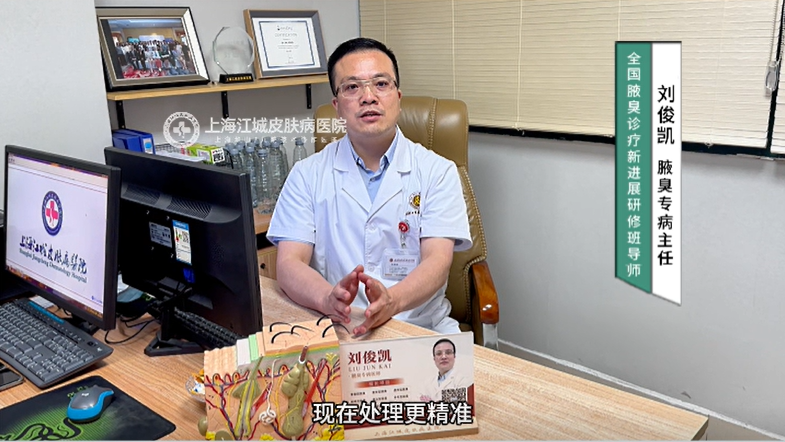 据上海江城腋臭专科刘俊凯主任介绍,腋臭的根源在于腋下大汗腺(顶泌汗腺)分泌物被细菌分解后产生的异味。常规的外用止汗露只能暂时掩盖气味,而传统手术虽然能切除汗腺,但往往伴随较大的创伤风险。