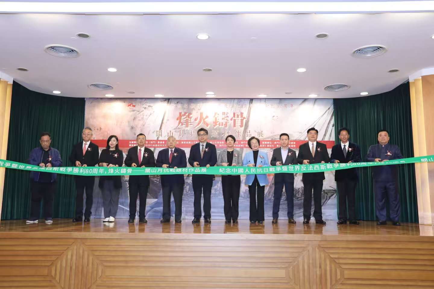秋高气爽,日丽和风。位于澳门中华总商会四楼,刚重新装修好的“马万祺先生纪念堂”,12月1日迎来了“纪念中国人民抗日战争暨世界反法西斯战争胜利80周年,烽火铸骨——关山月抗战题材作品展”。展览由赏心堂(澳门)书画会主办;广东省关山月艺术基金会、关山月美术馆协办;澳门中华总商会鼎力支持;澳门文化界联合总会指导;澳门特别行政区政府文化发展基金资助以及澳门日报的媒体支持,昨日下午在澳门中华总商会马万祺先生纪念堂隆重开幕。