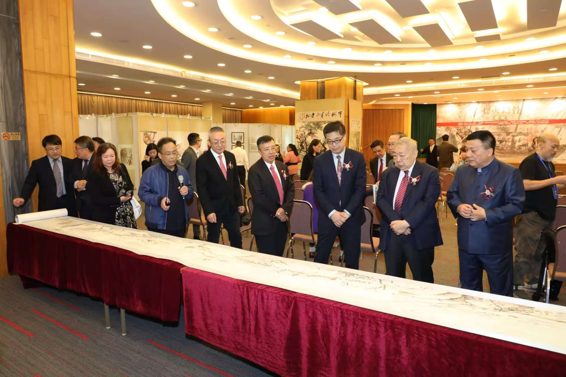 出席开幕仪式主礼嘉宾有:中央人民政府驻澳门特别行政区联络办公室宣传文化部部长万速成,澳门文化局局长梁惠敏,全国政协常委、澳门中华总商会会长崔世昌,全国妇联常委、澳门妇联总会永远会长、澳门中华总商会副会长贺定一,全国政协澳区委员、澳门中华总商会理事长马志毅,文化发展基金行政及财政处处长梁富华,永利澳门及永利皇宫社区及政府关系副总裁张诗敏,综合旅游休闲企业青年专业协会会长黄升雄,澳门通集团控股有限公司董事会主席兼总经理孙豪,世界非遗传承人大会副主席,中国电影家协会影视基地工作委员会副会长。、国华影视基地总裁刘国华,关山月美术馆馆长陈俊宇,广东省美术家协会副主席、赏心堂(澳门)书画会会长刘富业博士等,中华总商会理监事及会员均有出席,澳门南海同乡会、西樵同乡会理监事以及澳门多个社团代表出席。场面热闹,前来参观者众。
