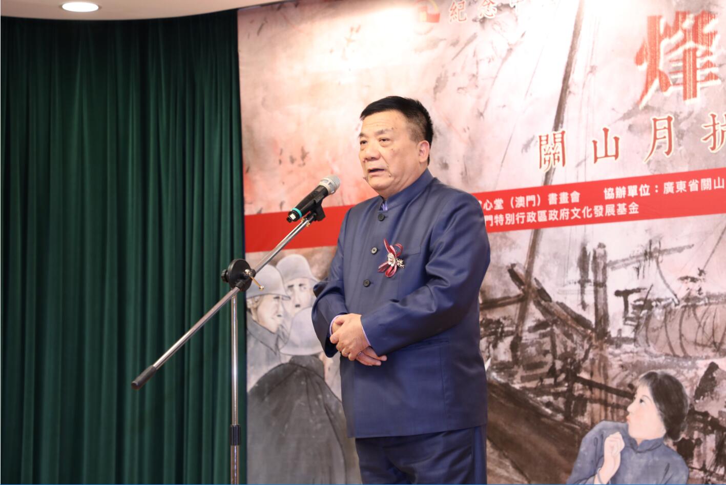 刘富业博士在发言时,赞扬恩师关山月对澳门的贡献,对整个岭南画派的重大影响,他表示,在纪念中国人民抗日战争暨世界反法西斯战争胜利80周年之际,举办是次画展,具有深远的历史意义和国民的教育意义。