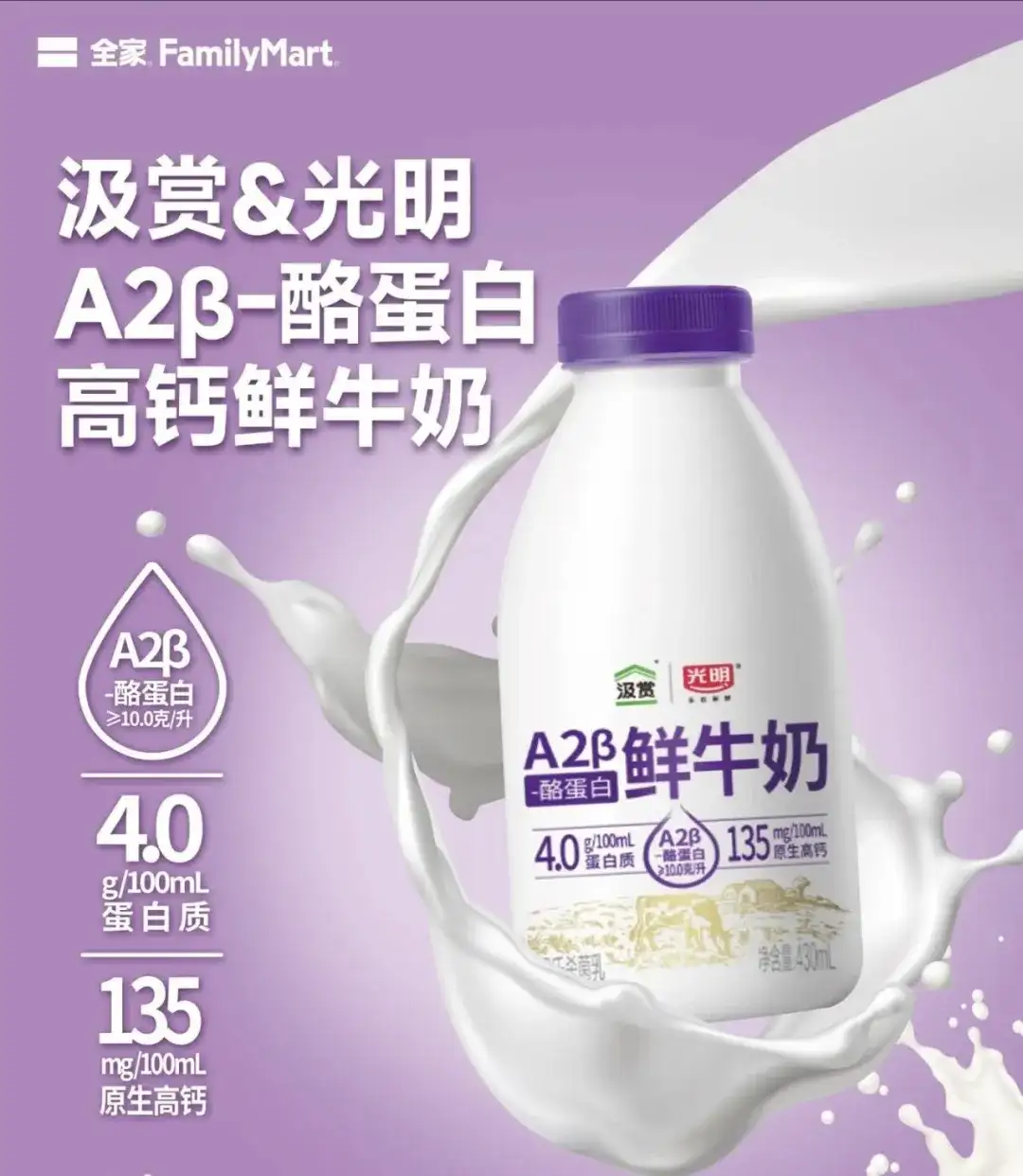 全家还与光明乳业联合开发独家商品——“汲赏&光明 A2β-酪蛋白高钙鲜牛奶”,该产品仅在全家渠道独家售卖。