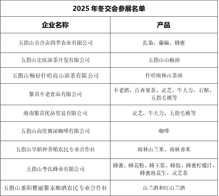 近年来,五指山凭借其得天独厚的自然条件,将“三片黄金叶”——雪茄烟叶、大叶茶、野菜叶以及猪肚菇、山兰米等特色农产品,精心培育并打造成了乡村振兴的闪亮名片,为当地居民铺设了一条通往富裕与幸福的新道路。此次冬交会,五指山展馆将以“五指山珍”为核心,将原生态产品和生活肌理搬进展馆,展出具有自贸港特色的热带高效农业农产品。其中,参展的企业有黎柏扣、三睿、五指山农投集团等35家,五指山红茶、雨果酸奶、山柚油、蜂蜜、斑斓、五指毛桃、灵芝、忧遁草、咖啡、牛大力、黎锦、文创、藤编、蛛王、兰花、山兰酒、山兰米、粽子、五指山野菜等产品参展,天涯海角椰子水新品首发,雨果酸奶、信封茶等网络爆款产品轮番亮相。此外,馆内还特意打造了“五指山雨林大叶茶体验区”,让参观者品茶歇脚,感受来自雨林深处的茶香风韵。同时,馆内还将不定时进行复古歌舞表演,让叫卖声、歌声、交谈声与茶香、特色美食的香味交织成一曲生动的“山城交响乐”。