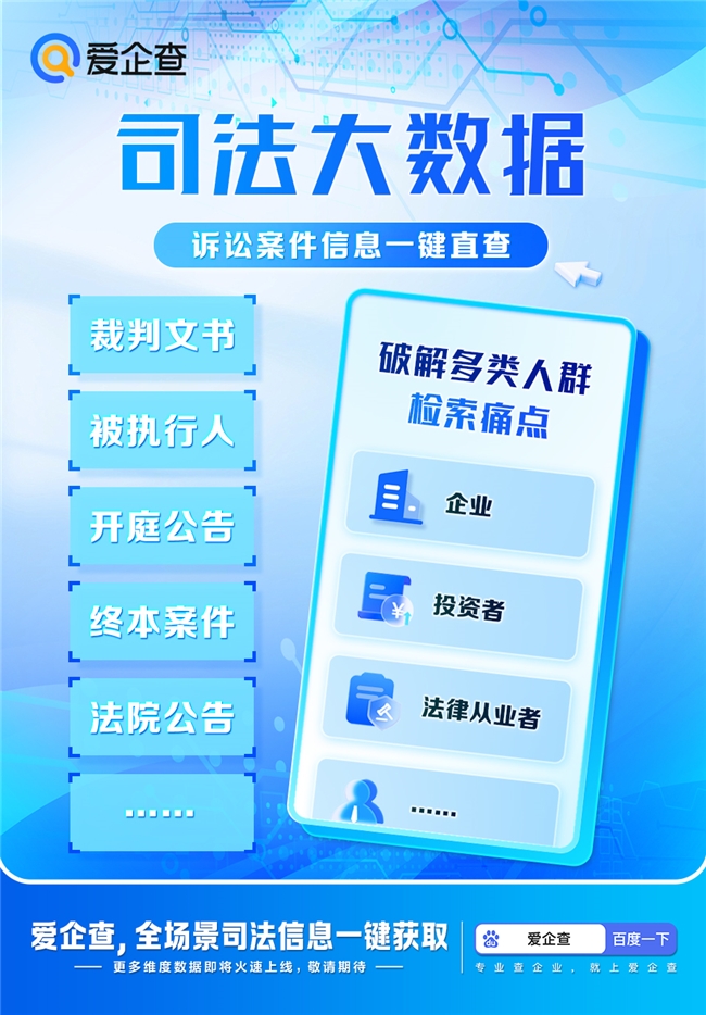 在数据要素市场化的浪潮下,爱企查“司法大数据”“信用大数据”等功能创新不仅是对商查行业的升级,更是对诚信社会建设的有力助推。未来,爱企查将发挥平台数据聚合与智能分析的核心优势,以不断优化创新的产品功能为支点,打通数据要素流通壁垒,以商查服务的数字化升级,为推动社会信用体系建设与各行业高效发展注入更多动力。