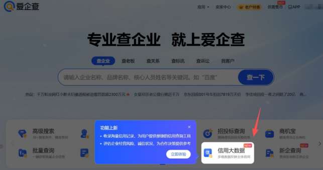 近期,企业信息查询优选平台——爱企查重磅上新“信用大数据”功能,以“海量信用记录一键直查”的核心优势,将分散的信用线索转化为可辅助决策的数据依据,为不同用户群体构建起全场景风险防控网,赋能商查行业智能升级。