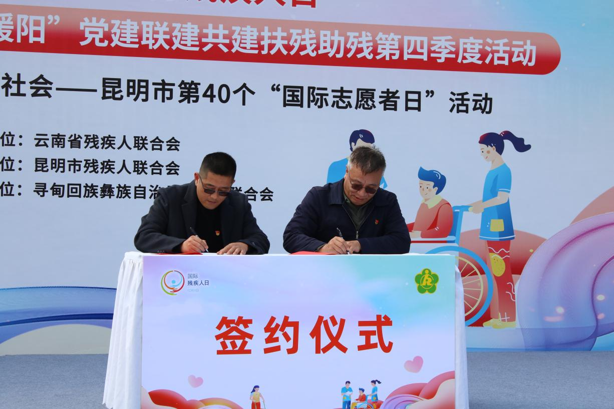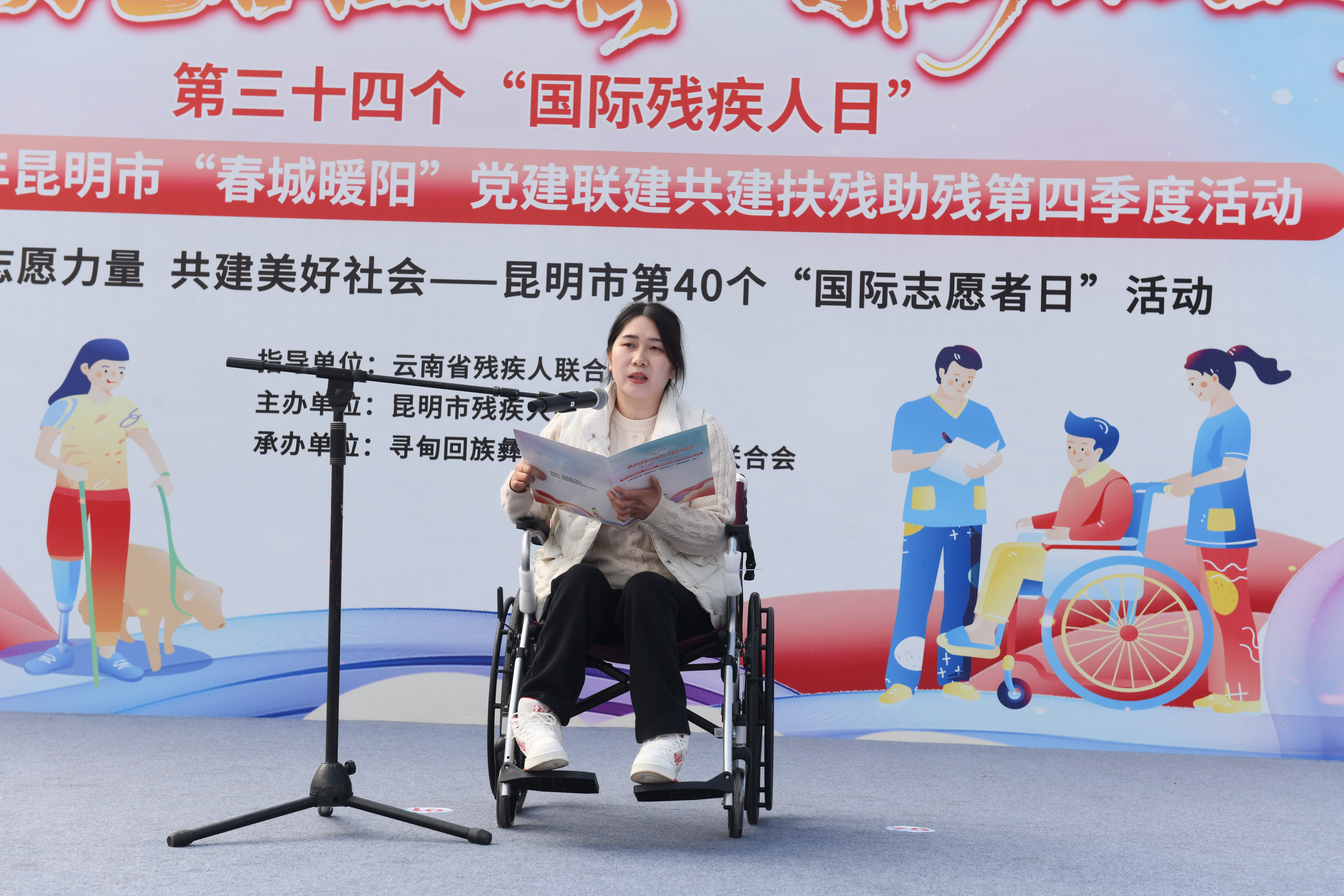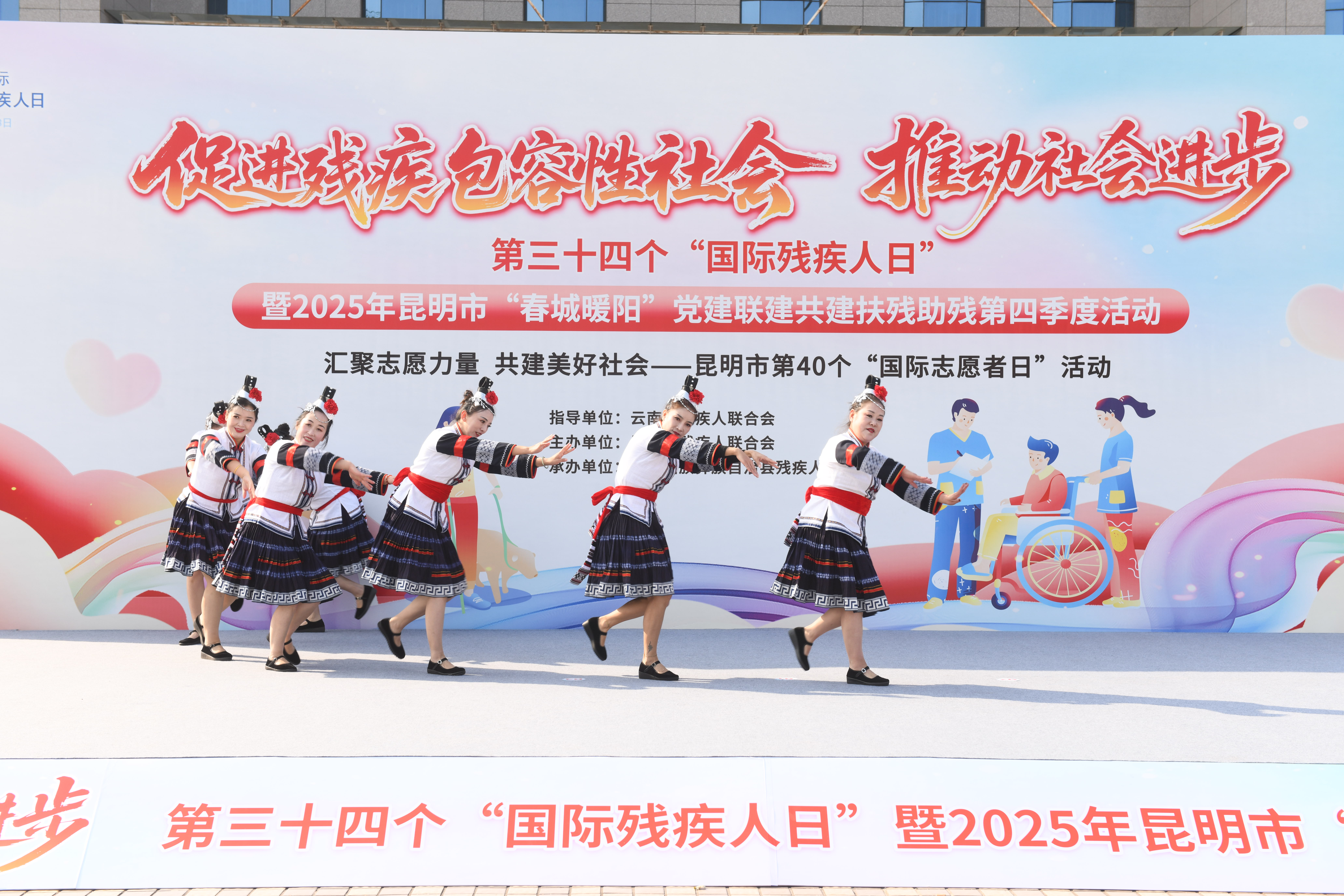 12月2日,昆明市第34个国际残疾人日暨2025年“春城暖阳”党建联建共建扶残助残第四季度活动在寻甸县民族团结进步广场举行。本次活动由云南省残联、昆明市委市直机关工委指导,昆明市残联主办,寻甸县残联承办,以“促进残疾包容性社会 推动社会进步”为主题,依托“春城暖阳”扶残助残党建联盟平台,整合各级党组织资源,通过“七个一”系列活动为残疾人送上关怀与支持,推动形成全社会扶残助残的良好风尚。