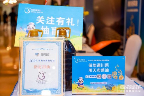 2025企业家博鳌论坛以“链接全球,引领未来:‘十五五’新机遇”为主题,包括世界500强、中国500强和行业领军企业家在内的各界嘉宾汇聚一堂,共话“十五五”发展新机遇,共探新发展格局下企业发展的新路径、新作为。“天府菜油”作为重要品牌代表,不仅融入主论坛等现场环节,更在会场专设展区,集中展示“天府菜油”系列菜油产品与文创产品,吸引众多与会嘉宾驻足交流、互动体验。展区特别策划开展的“盲盒抽奖”活动准备了1000份精美礼品,涵盖菜籽油、文创帆布袋、雨伞、扇子、镜子、风车等,持续掀起参与热潮。