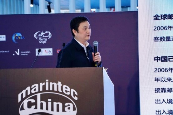 中国旅游车船协会邮轮游船游艇分会会长、中船邮轮科技发展有限公司董事长杨国兵致辞