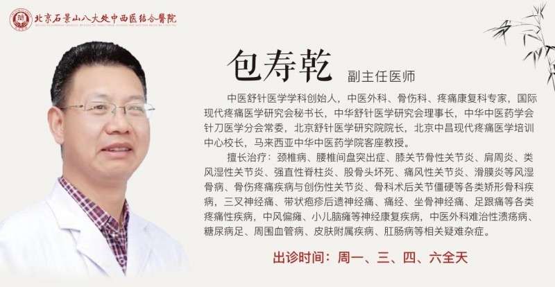 相信很多人都有过肩膀酸痛、胳膊不得劲儿的经历,大家的第一反应是不是“我得了肩周炎”?如果您这么想,那我可得说,有95%的可能不是肩周炎,甚至可能比肩周炎更严重!要解开肩痛的谜题,12月4日19:00,北京石景山八大处中西医结合医院骨伤科副主任医师包寿乾做客北京广播电视台纪实科教频道《健康北京》栏目,带大家认识中医舒针疗法,一针解锁“冻结肩”。