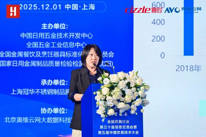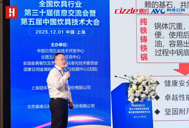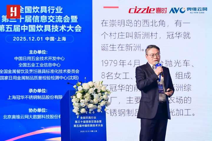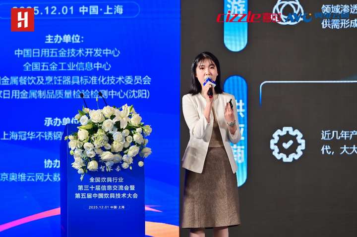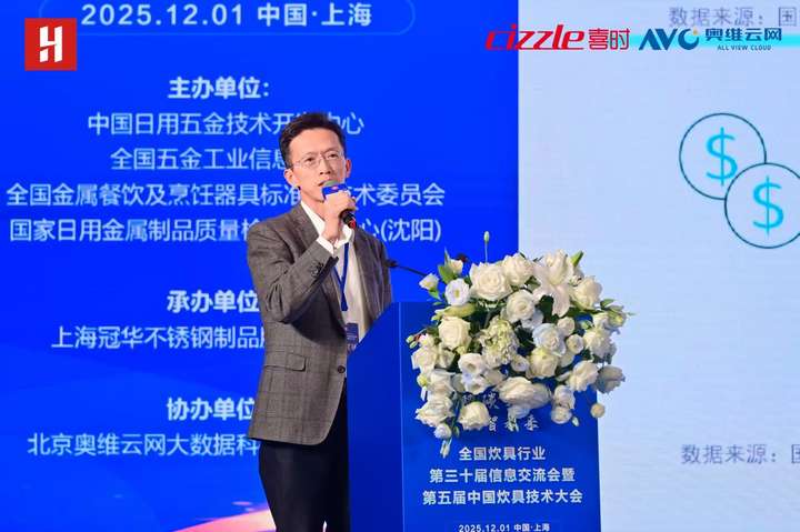2025年12月1日,全国炊具行业第三十届信息交流会暨第五届中国炊具技术大会在上海崇明由由喜来登酒店成功举办。本次会议由中国日用五金技术开发中心、全国五金工业信息中心、全国金属餐饮及烹饪器具标准化技术委员会、国家日用金属制品质量检验检测中心(沈阳)主办,北京奥维云网大数据科技股份有限公司协办,上海冠华不锈钢制品股份有限公司承办,以“绿色智造·双碳引领·数智未来”为主题,汇聚行业领导、企业代表及专家学者,共探炊具产业转型升级新路径。