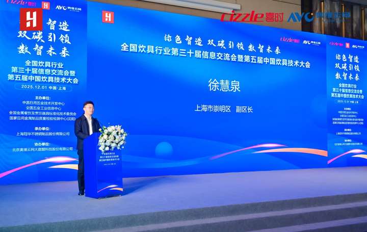 上海市崇明区副区长徐慧泉代表区政府致辞,对大会召开表示热烈祝贺。他指出,轻工厨具是崇明“1+3+X”先进制造业体系的重要组成部分,已培育多家优秀企业。崇明通过政策扶持构建良好政企关系,“十五五”规划之际,诚挚邀请企业家在人才培养、技术创新等领域合作,共享发展机遇。