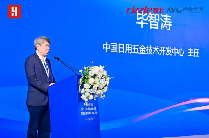 中国日用五金技术开发中心主任毕智涛代表主办方发言。他表示,崇明生态理念与会议主题高度契合。中国炊具行业已形成千亿规模,正处于绿色与数字转型关口。中心聚焦标准引领、质量检测等核心任务,未来将深化合作,助力行业在绿色制造、“双碳”引领中抢占先机,书写高质量发展新篇章。