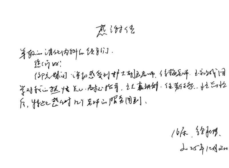 据悉,该患者因胃息肉入院,入院后先完善相关检查,随后择期接受了胃息肉切除术治疗。住院期间,他对术后饮食、血压控制等恢复细节有不少顾虑,接连提出各种疑问。作为负责护理该患者的实习生,王家诚和带教老师始终耐心倾听他的每一个担忧,没有丝毫敷衍,还逐一对每个问题细致讲解,反复确认他是否完全明白。正是这份耐心的回应让患者放下了焦虑,康复进程也更为顺利,患者特意写下感谢信,表达内心的感激。