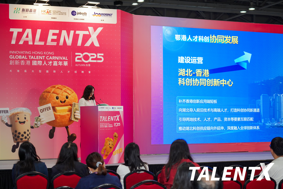 武汉光谷人才集团有限公司联合中国电动汽车百人会、源创力离岸创新中心、湖北九峰山实验室等单位共同推动建设的“湖北—香港科创协同创新中心”,在本次展会中扮演了重要平台角色。该中心联动武汉大学、华中科技大学、湖北大学、武汉科技大学、湖北江城实验室、湖北九峰山实验室、长江存储、华工科技、金山办公等50家湖北省内重点高校、科研院所及龙头企业,共同在香港呈现了一场大规模、高层次的人才与创新资源对接盛会。现场集中发布了超过300个面向全球的高端岗位,并开设便捷的简历投递通道,实现了人才供需的高效精准对接,切实推动了湖北与香港在人才、技术、资本等关键要素上的双向流动。