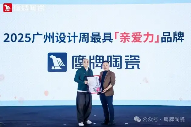 12月7日晚,2025广州设计周20周年家宴盛大举行。家宴现场,广州设计周CEO贺文广揭晓了为鹰牌准备的广州设计周20周年礼物——2025广州设计周最具「亲爱力」品牌,将现场氛围推向顶峰。