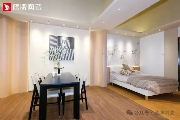 展会现场,鹰牌新材用旗下的安芯墙板、硅藻泥科技板、HPL石晶地板、不燃高压树脂板、质感墙衣等系列环保新型饰面材料打造了一个个生动的家装场景,供观众沉浸式体验美快好省的环保装配式旧改效果。