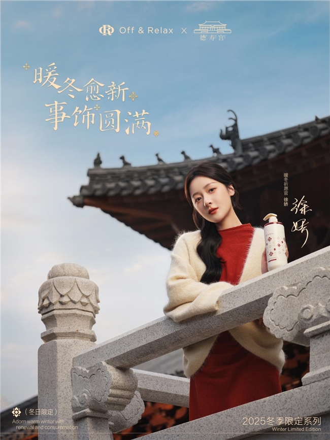 此外,Off&Relax品牌邀请青年演员徐娇担任本季的“暖冬祈愿官”。她以城市漫游的方式走入德寿宫庭院,用心感受红墙掩映的冬日暖色和檐角纹饰的悠悠古意,每一处细节都像是被时间温柔守护的故事。在光影与行走之间寄托冬日心愿,也在静谧香气中重新向内连接。借助徐娇的温柔气质与东方审美意境,Off&Relax为每一位用户送上“暖冬愈心,事事圆满”的新年好运祝福。