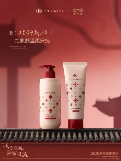 在冬日的冷风与年末的节奏中,人们总会渴望一个新的开始。其实当生活慢下来,就会发现“圆满”已归于细微日常。一场沉浸的沐浴、一条温润的香氛轨迹、一次为自己按下的暂停键,皆为种种圆满。Off&Relax希望借由这缕温润的白檀香,愿每位用户在冬日里的洗沐中,身心愉悦、洗旧迎新,切身获得属于自己的小圆满,好趁笙歌且自娱。