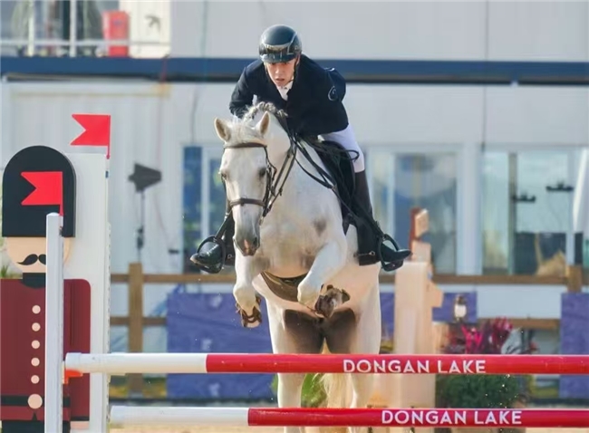 在60cm贴时赛中,来自重庆和泰马术俱乐部的小骑手甘家顺和罗予彤分别搭档远山和艾莎,携手杀进三强,获得冠军和季军,来自重庆卓悦马术俱乐部有限公司的张奕霺搭档穆法莎,获得亚军。