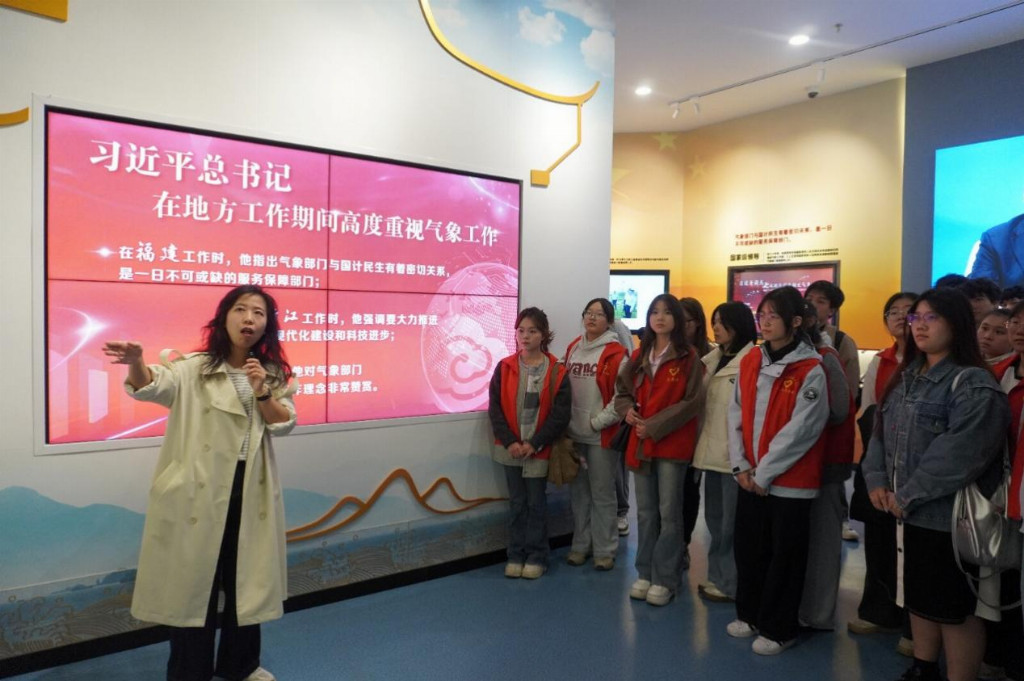 这次参访调研以“气象应急服务全链条”为主线,全方位了解福建气象事业的发展历程。在气象史志馆展区,老式观测仪、手绘气象记录等实物与史料,在讲解老师王盈怡的细致解读下,清晰勾勒出福建气象从传统人工观测到现代数智感知的演进脉络。电子屏上动态呈现的全域气象观测网络与展柜中的传统设备,直观展现了我省气象部门在精密观测技术、多源大数据处理等方面的跨越式发展。师生们围绕“不同时期气象服务的社会价值”展开深入讨论,深刻理解传统经验与现代技术的传承融合创新,以及福建气象在保障生命安全、生产发展、生活富裕、生态良好的使命担当。