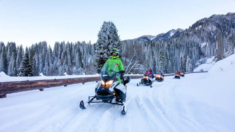 乘雪地摩托呼啸松林雪海,打卡野雪公园粉雪坡道。