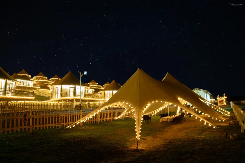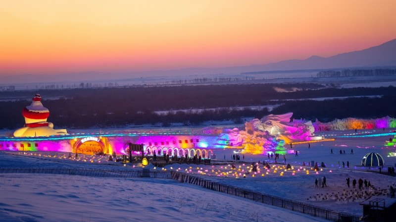 周末还有雪地赛马、姑娘追表演。摄影爱好者可在湖畔“冰屋”民宿下午茶,入住木子陶野奢度假酒店。