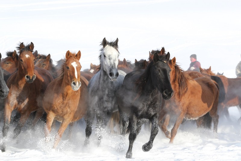 精彩的雪地赛马、姑娘追、刁羊等表演带您感受马背民族的豪迈与热情*毡房内奶茶醇厚、肉香弥漫,和牧民一起打馕、编马鞭、牧牛羊,享受归家的欢畅,围炉夜话聆听冬不拉弹唱民族史诗。