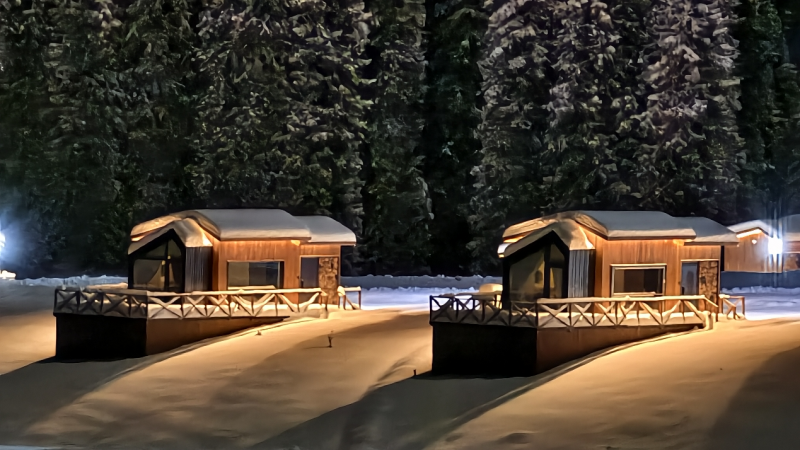 谷底“雪原咖啡屋”手冲咖啡与哈萨克奶茶,落地窗外是云杉与雾凇形成的琉璃童话世界;夜晚宿在云杉间的星空营地,听松涛与雪落声同眠。
