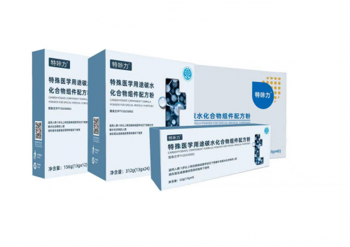 特咔力®特殊医学用途碳水化合物组件配方粉:本品是专为1岁以上特定疾病或医学状况下需补充碳水化合物的人群设计的非全营养配方食品。它以麦芽糊精、结晶果糖为主要碳水化合物来源,每100g含96g碳水化合物,能快速补充能量,且蛋白质、脂肪含量为0,低渗透压、低黏度,易口服,不添加蔗糖,口感温和。使用时需在医生或临床营养师指导下,按每袋(13g)加入约2mL水的比例调配,为特殊人群提供科学的碳水化合物营养支持。