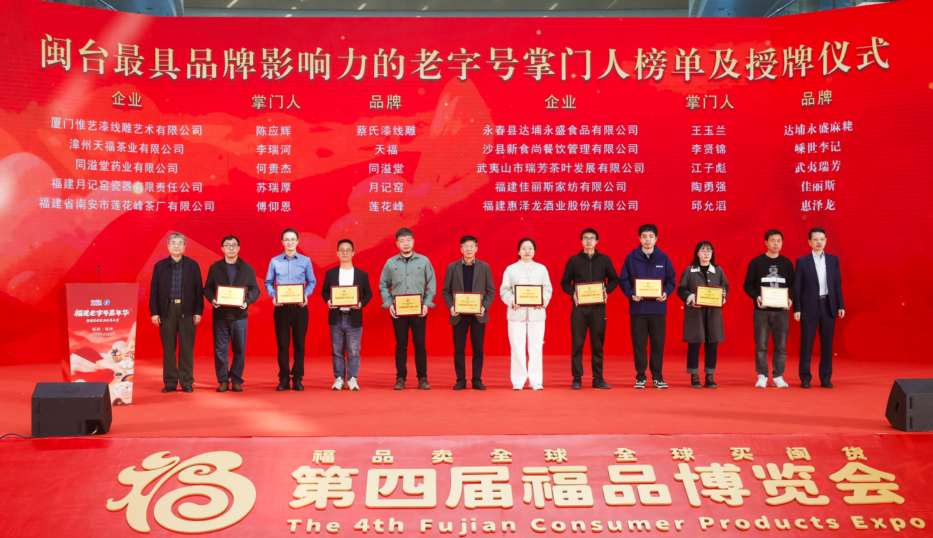 11月21日,第四届福品博览会在福州隆重开幕,作为福博会重要配套活动,“福建老字号嘉年华暨福见好生活乐享大赏”同期启动。在备受瞩目的闽台老字号掌门人发布仪式上,瑞芳茶號第三代传承人江子彪先生荣获“闽台最具影响力的老字号掌门人”称号。这份荣誉,不仅是对江子彪先生个人坚守与付出的肯定,更是对瑞芳茶號百年传承、匠心制茶的高度认可。