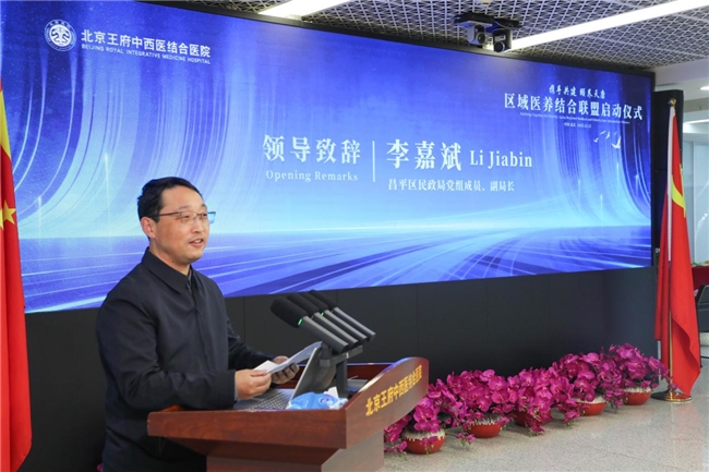 在王府医院副院长李乐工主持开场后,昌平区委卫生健康工委委员、区卫生健康委副主任胡帅首先发表致辞。他高度肯定了王府医院主动担当、牵头推动区域医养结合事业发展的示范作用,并指出,联盟的启动是推进健康昌平建设的重要举措,未来将以联盟为纽带,建立统一标准、聚焦失能慢病人群、探索中西医结合模式,打造可推广的昌平样板,为全区老年人带来更多福祉。