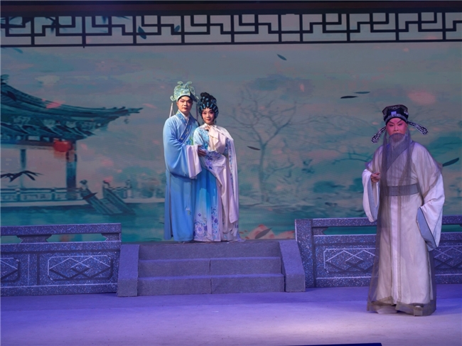由陈振江饰演的柳梦梅和朱女饰演的杜丽娘演出一场缠绵悱恻的爱情故事