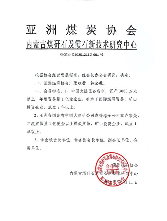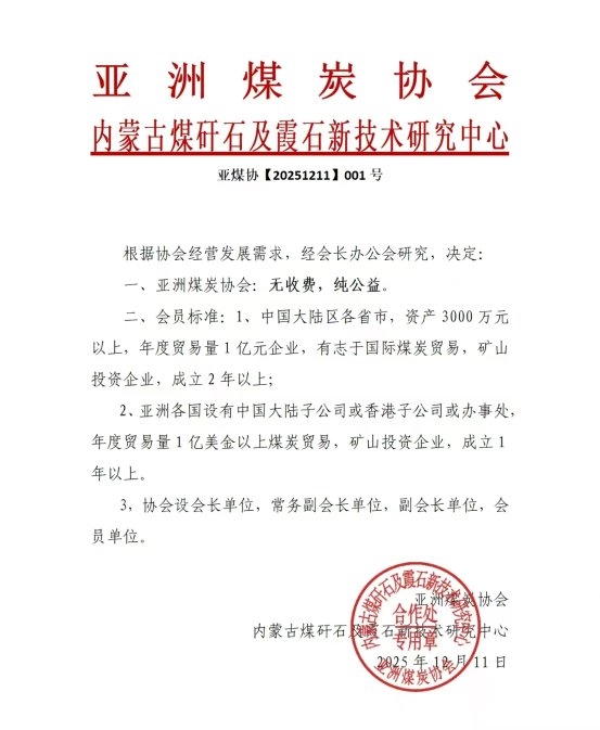 亚洲煤炭协会执行会长杨蔚考博士,同时兼职亚洲黄金协会执行会长、亚欧矿业协会执行会长、陕西省煤炭工业协会常务副会长、陕西省煤炭运销协会常务副会长、内蒙古煤炭工业协会常务副会长、黑龙江科技大学进修“采矿工程”专家、政华煤业集团煤矸石电厂项目总指挥长,此次协调内蒙古煤矸石及霞石新技术研究中心授权亚洲煤炭协会及中国秦商国际能源有限公司(含全资子公司)自2025年11月11日起代表内蒙古煤矸石及霞石新技术研究中心全权对外签署合作协议并履行资金投资及技术合作,授权期限:10年。
