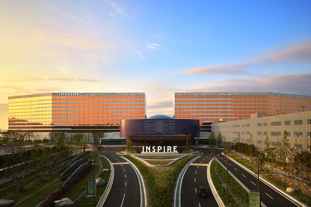 迎仕柏度假城 (INSPIRE Entertainment Resort) 坐落于韩国仁川永宗岛,毗邻仁川国际机场 2 号航站楼的国际商务中心区三期 (IBC-III),是一座集多元度假设施、娱乐元素与顶尖服务于一体的大型综合娱乐度假胜地。迎仕柏度假城完善的配套设施包括提供 1,275 间客房、风格各异的三栋五星级酒店大楼,设有 15,000 个坐席的韩国首个多功能演出场馆、多功能室内玻璃穹顶水上乐园,包含韩国最大的宴会厅的尖端会展设施,体验丰富并能容纳多达 30,000 人的大型户外欢聚公园、长 150 米且拥有巨型LED 屏的沉浸式娱乐街区,以及集购物、餐饮、创新娱乐空间于一体的商业综合体。开业仅一年时间,迎仕柏便已接待逾 400 万访客,奠定了其在韩国作为全球领先综合度假城的地位。