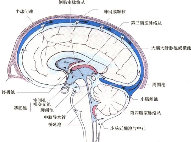 现代医学认为:脑脊液在脑室系统和蛛网膜下腔中循环流动,途径多个脑池(如基底池、侧裂池等),最终通过静脉窦,血管周隙被循环吸收,以维持整体的平衡。颅脑创伤受,正常的脑脊液循环通路遭到破坏,就会出现脑水肿,造成颅内压增高。