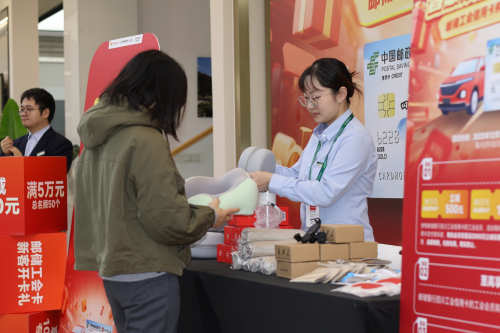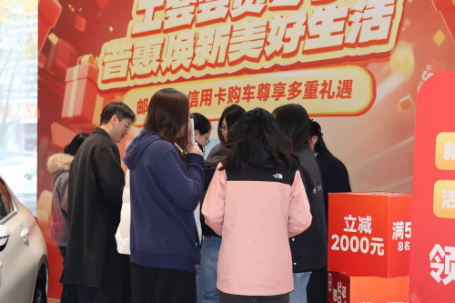 活动现场人流如织,崭新的展车排列整齐,导购员正耐心为职工群体讲解购车优惠,不少人拿着手机核对中国邮储银行工会信用卡的立减规则,认真计算优惠金额,脸上笑容洋溢。